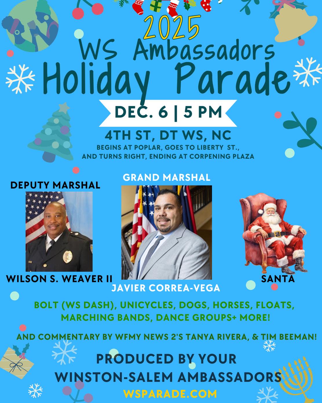 Grab the whole family and bundle up for an afternoon of festive fun. Arrive early to snag the perfect viewing spot and catch up with your LWS friends—our tent will be set up along the parade route with cozy hot beverages and tasty treats waiting for you from 2–5 p.m. When the last float rolls by, keep the celebration going! Stroll down to Corpening Plaza for the City of Winston-Salem’s Annual Christmas Tree Lighting—a magical tradition you won’t want to miss. Let us know you'll be there!