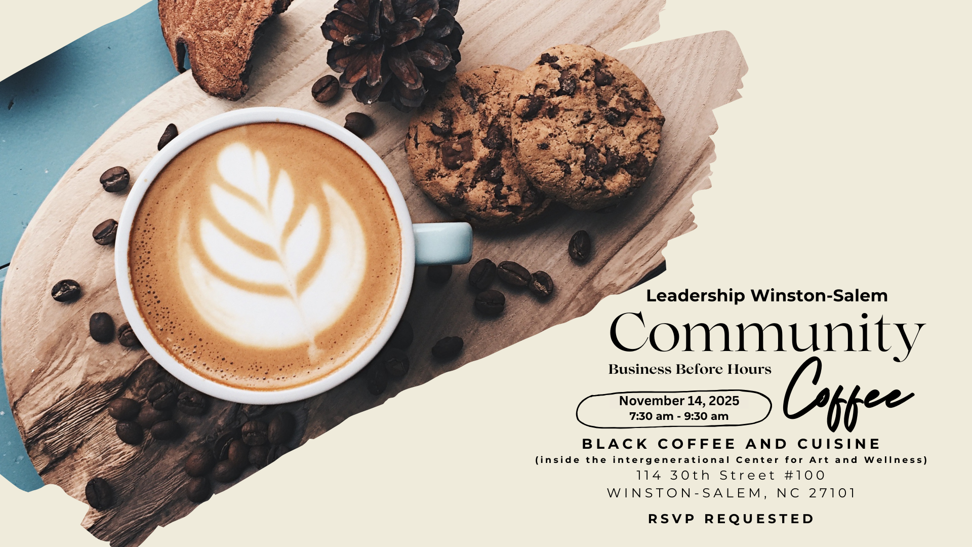 Join Leadership Winston-Salem for our upcoming Community Coffee "Business Before Hours" event. This event is designed to bring our community leaders together to network and support local small businesses. Enjoy a fresh, hot cup of locally brewed coffee and engage in meaningful conversations with like-minded individuals. What a great way to jumpstart your day! We look forward to seeing you there.